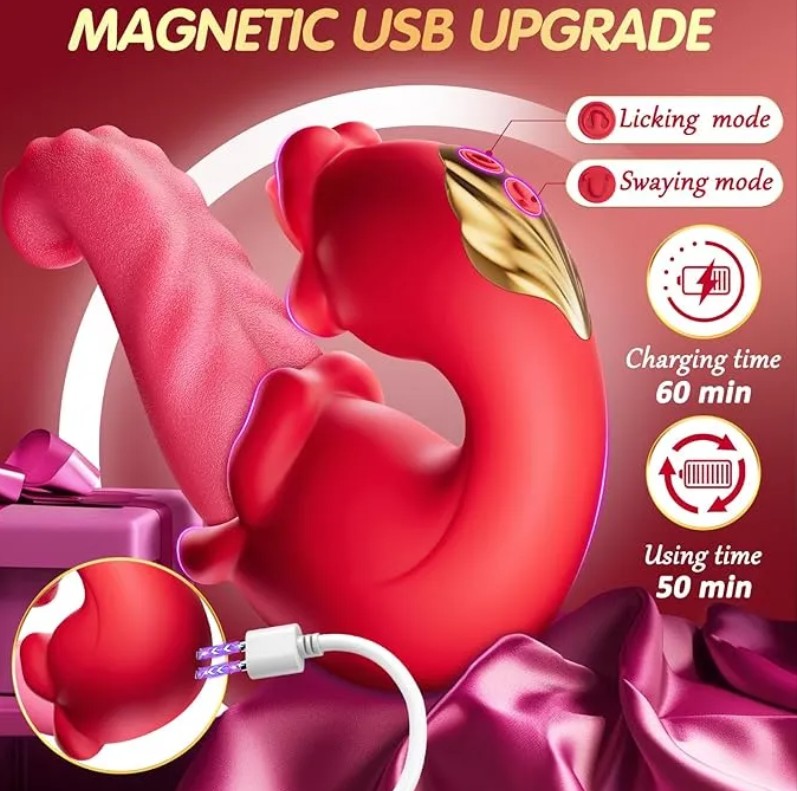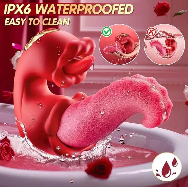 3in1 Pink Rose Vibrator with Tongue Licking and G-Spot Stimulation
