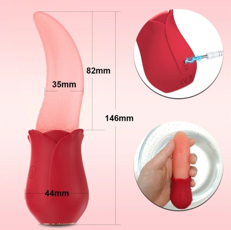✔️ The Tongue Licking Rose Vibrator has IPX6 waterproof rating, With a USB charging cable.